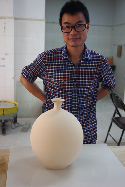 小黑的妻子是他的同班同学,小黑每天呆在陶艺室,他妻子有意见,说老是不陪她。小黑就带妻子来这里,给她做一个小礼物。“他读书时专业拔尖,是我们班的领头羊。对于专业,他已经到了‘走火入魔’的地步。有时父母来,他都会提前把工作做好。”叶婧谈起小黑脸上很甜蜜,“也许是他对专业的痴迷才让这么多同学支持他吧。”