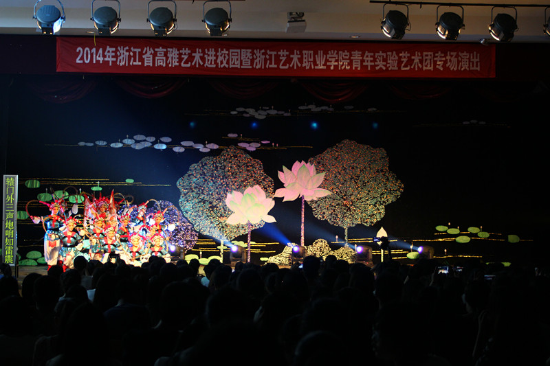 浙艺院青年实验艺术团作为省内一所由高校承办的专业团体,近几年来,进入浙江省的各所高校演出,屡受好评。“2014高雅艺术进校园”活动从5月5日开始,连演十场。5月29日,学院青年实验艺术团来到嘉兴职业技术学院,进行压轴演出。