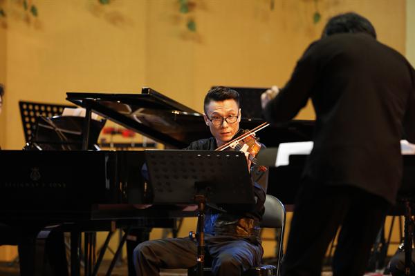 全场音乐会的乐曲有诗意,有越韵,有现代音乐词汇彼此相交融。作曲家丁樱的《剡水曲》,探索中国音乐的张力表现,虚实之变、动静之变、清浊之变,有着强烈深沉的音乐表现;青年作曲家景新的《神隐西罨居》,则运用了浙江仙居童谣的音乐素材,用西洋管弦乐与中国拉弦乐器、弹拨乐器共同演绎。这种新颖的音响与结构有着当代年轻作曲家的表达方式,不同乐器在乐曲进行中流淌、静止,而又互相编织。