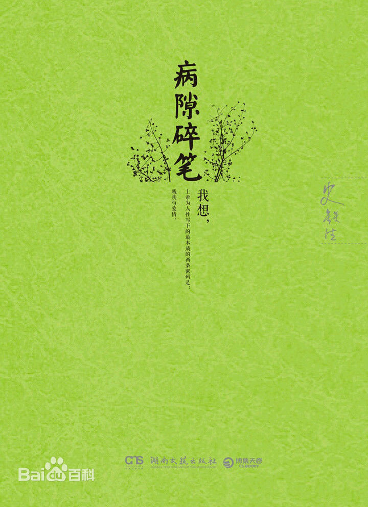 古时候君王的死叫做“薨”,普通人的死叫做“去世”,有身份有名望之人的死叫做“逝世”,十恶不赦的囚徒的死叫做“罪有应得”,得道高僧的死叫做“圆寂”,在汉语的语用方面这些半点错不得,更别提在具有神秘佛法性的等级中国里乱纲了。可是这么多这么繁杂的名目里,哪一个不是相同的“离去”呢?而我却注意到史铁生在《病隙碎笔》里用的最多的就是单单一个“死”字,利利落落,坦坦荡荡,不遮不掩,就好像恐怖的死本来就应该是这样坦然。