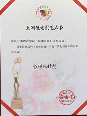 浙艺导演指导微电影《独家报道》 荣获亚洲微电影艺术节“最佳新作”奖