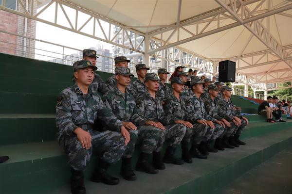 黄杭娟讲话。她向承担今年军训工作的中国人民解放军某部队及各位官兵致以崇高敬意和衷心感谢,对跨入我校学习的1108名新同学表示热烈祝贺。学校开展军事训练,是大学生在校期间接受国防教育、树立爱国主义、集体主义和革命英雄主义的一个基本形式,是我国国防和军队建设培养大批高素质后备人才的有效举措。一直以来,我校非常重视大学生的军训工作,邀请经验丰富的承训部队,精心安排训练计划,细致做好各项服务,每届参训学生的政治觉悟、理想信念、思想品德、作风纪律、军事技能、国防观念、身体素质等各方面都得到了锻炼和提高。黄杭娟对新生们提出三点希望:提高认识,居安思危,牢固树立保家卫国的国防意识;严明纪律、听从指挥,牢固树立令行禁止的纪律意识;端正态度,自立自强,牢固树立互帮互助的团队意识。