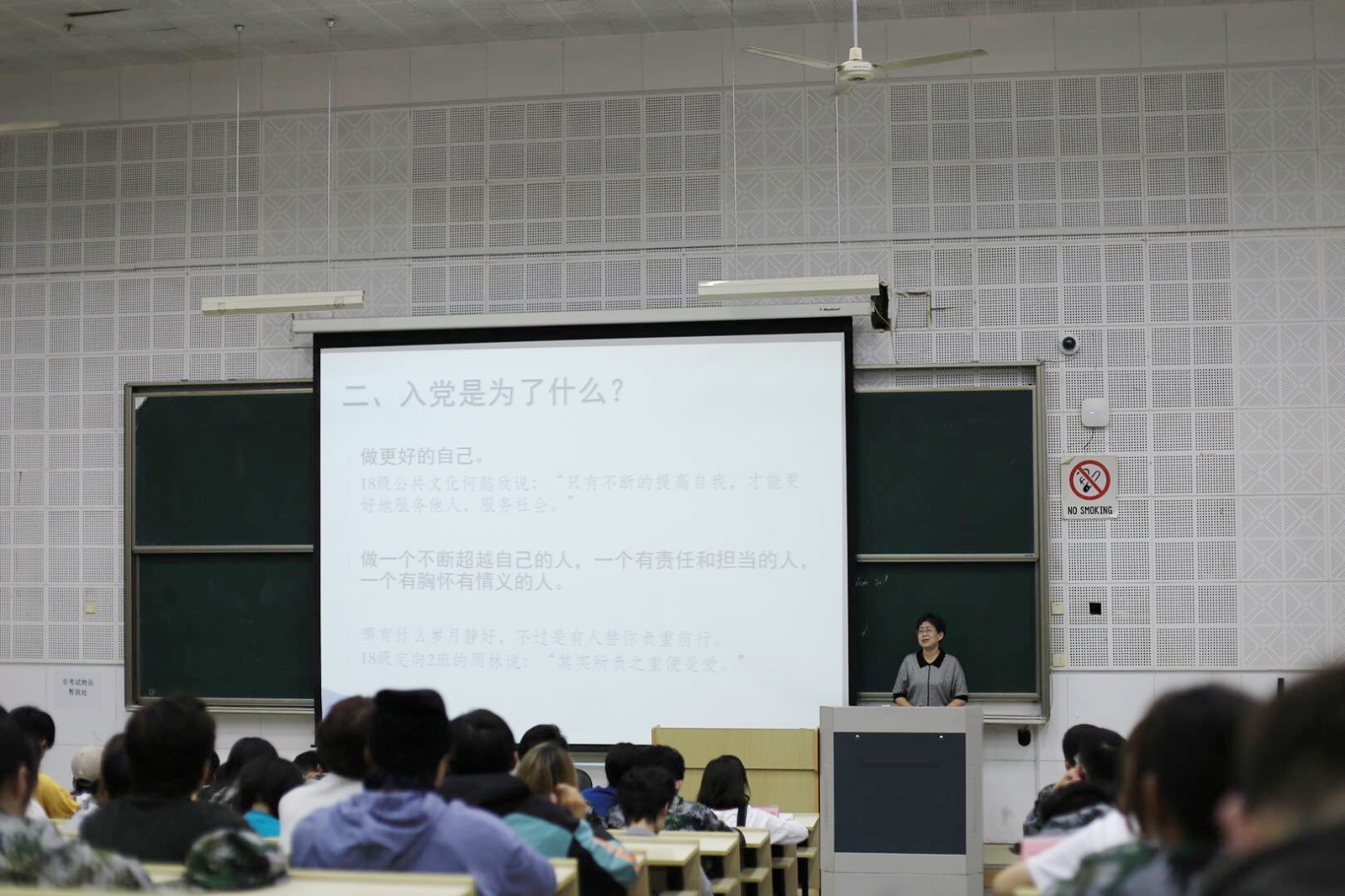 系党总支组织员钱杏芬通过展示校友事迹,引导同学们想象未来的自己,继而引发对现在的自己该怎么做的思考。她介绍了入党的相关条件,鼓励同学们积极入党,成为一个有责任有担当、有胸怀有情义的人,不断超越自己,做更好的自己。入党要从现在开始,从身边做起,从小事入手。