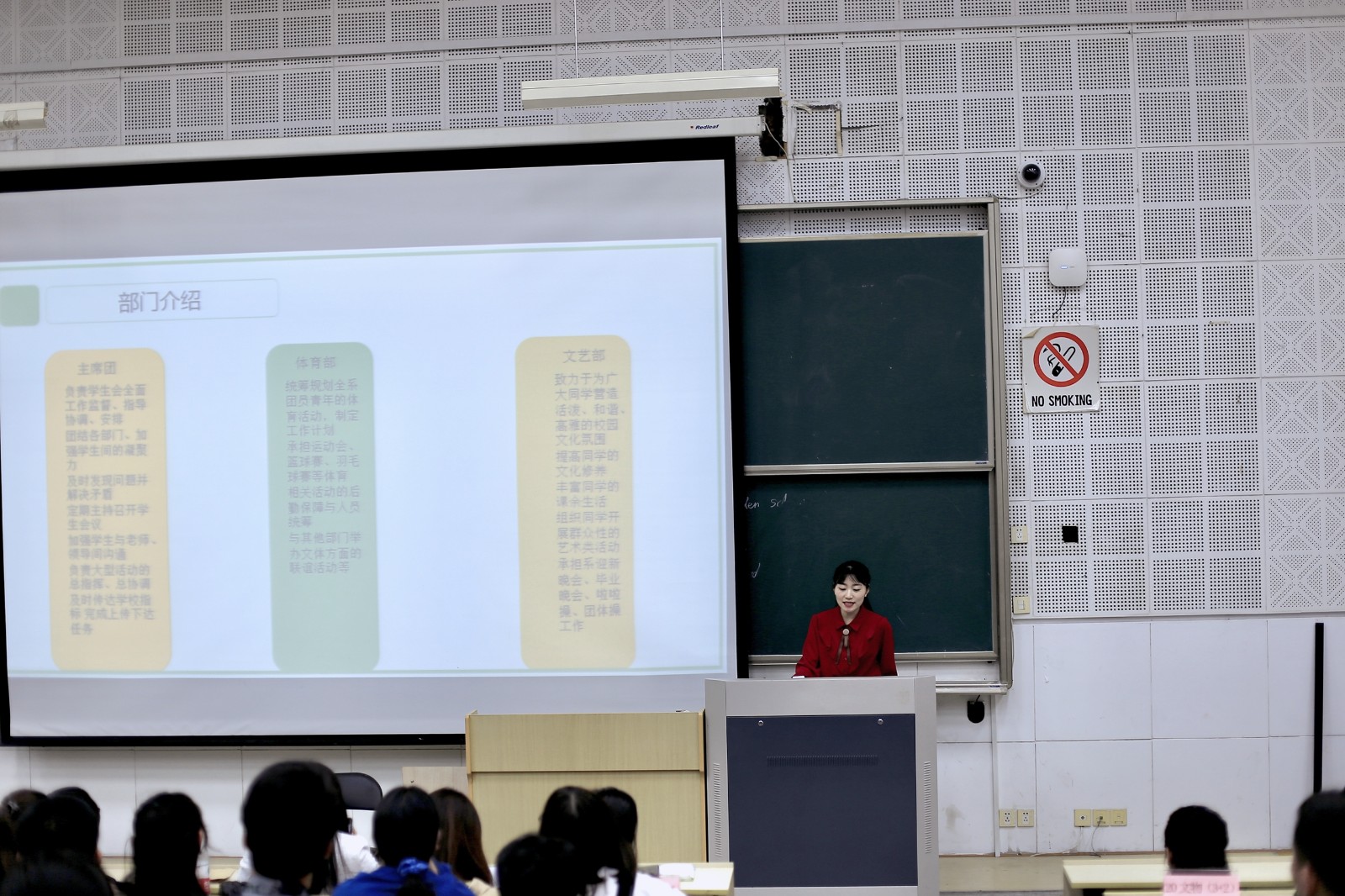 系学生党支部书记陈涛讲解了大学生党员发展工作流程,学生考勤纪律、奖学金评比办法、专升本、校园安全等方面的内容;系团总支书记宋煜介绍了系团学和社团的基本情况与构成、志愿服务的重要性、系部长期合作的对外志愿服务合作单位。鼓励新生积极参加学校的“第二课堂”,志愿服务活动,在大学三年不负时光,不负自己。