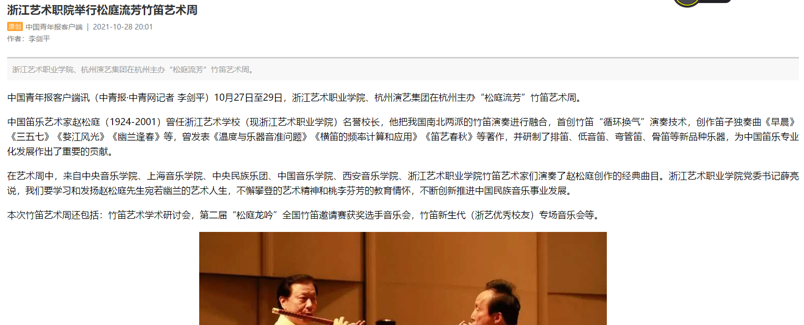 中国青年报:浙江艺术职院举行松庭流芳竹笛艺术周