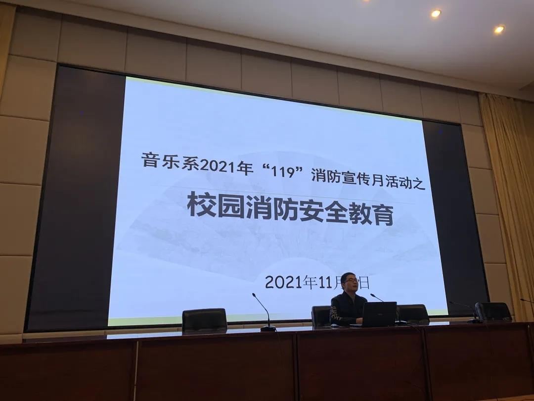 为进一步提高政治站位,牢固树立校园安全责任意识和红线意识,在全国第30个“消防安全日”之际,11月8日晚,音乐系开展2021年“119”消防宣传月活动之校园消防安全教育活动,专题强调和布置系部冬季消防安全工作。系党总支常务专职副书记谢志勇、全体辅导员、2021级高职及本科新生参加。活动由系党总支专职副书记刘梦伟主讲。