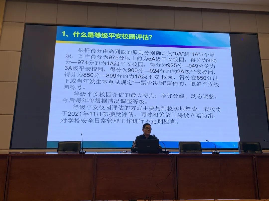 刘梦伟还解读了近期学校即将开展的等级平安校园评估宣传手册,介绍什么是等级平安校园评估、学校开展等级平安校园建设的总体目标、等级平安校园评估中应如何做等,希望全体同学做好当前学校安全各项工作,共同推进学校等级平安校园创建工作。