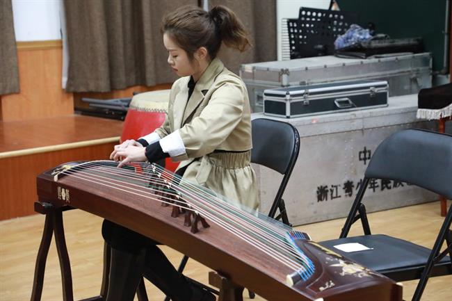 考生的演奏乐器涵盖了竹笛、主胡、二胡、扬琴、琵琶、阮、古筝、戏曲打击乐器等,考生们现场演奏了《秦土情》《枫桥夜泊》《郁轮袍》等曲目。从小学就开始学习古筝的杨同学现场演奏了《箜篌引》,她说:“从小学一年级就开始学习古筝,也很热爱越剧,对于这次考试充满了信心。”