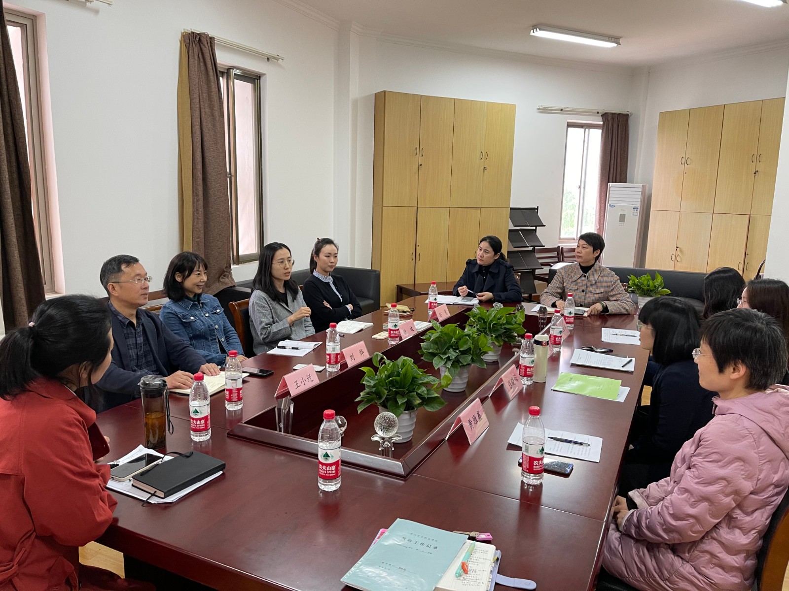 4月14日下午,陕西艺术职业学院基础教学部直属党支部书记王小迁一行4人来我校就文化教学工作进行调研交流。基础教学部党总支书记、主持工作副主任郑园全,副主任邢晓丽、李宁及部分文化课程教师代表参加交流。