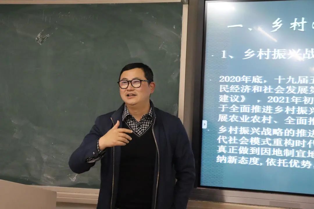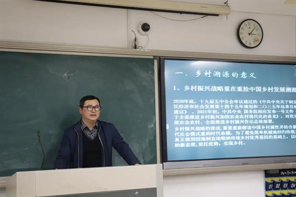 公共文化服务与管理专业教研室教师高峥讲述《君从何处来——乡村溯源途径》,他结合历史史实与自身的田野调查案例分享了乡村振兴战略及乡村溯源。