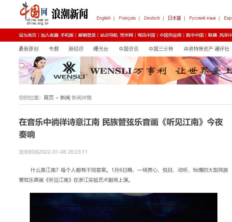 中国网浪潮新闻在音乐中徜徉诗意江南 民族管弦乐音画《听见江南》今夜奏响