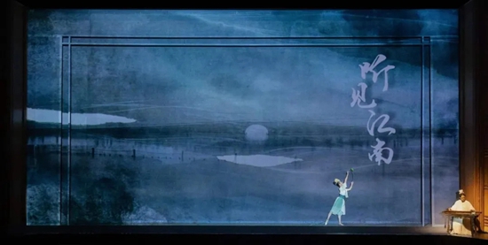 秉持民乐主题,遵循南宋精致、典雅的美学特色,《听见江南》深度融合诗词、绘画、书法等艺术讲述,并辅之以多媒体数字科技赋能,将作品从单一的听觉维度迁移到包裹性更强的情境性维度,从而呈现沉浸式、多元交互式的乐、舞、诗、画独造空间,让观众体验被当下重构的中国古典文化艺术意境。