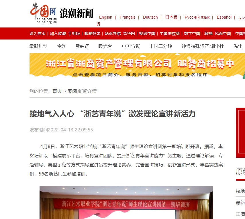 中国网浪潮新闻:接地气入人心 “浙艺青年说”激发理论宣讲新活力