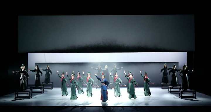 针对本剧舞台以白色调为主体的视觉特点,结合布景空灵、流动的特性,周正平阐释灯光在创作中时时地把握了特殊的演剧造型样式,彰显光的流动画笔之功效,在光的情绪表达上面做到精准、流畅、富有强烈的视觉感受。具体来说,首先,本剧的总体样式充分彰显了当代东方现代审美中简约、唯美、诗化、凝练的艺术特点,因此在用光上尽量避免繁复的空间光束,追求色彩的简单和谐,真正做到惜光如金。第二,为了弥补小百花全女班在武戏上阳刚气质的不足,灯光在表现手法就必须更加富有张力和强烈的节奏感,赋予观众战争场面的意象景观。第三,本剧舞美的整体性非常强且非常简约,为了使舞台画面更加干净,灯光在情境美学追求上面就要尽量做到完整、精致。第四,本剧在群体创作的舞台艺术样式中,高度的追求综合艺术效果,各部门必须精力集中地高度投入自身创作和最终呈现的全过程。最后,本剧在灯光艺术呈现中追求艺术与科技的高度融合,遵循灯光为表演而设计的原则,显光不露灯,在艺术表达中不留任何的技术痕迹,做到完美。