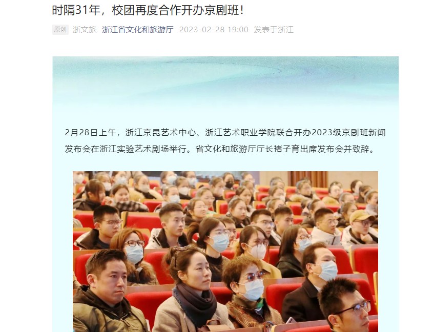 浙江省文化和旅游厅:时隔31年,校团再度合作开办京剧班!