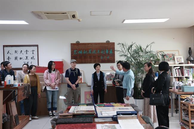 4月21日上午,黄杭娟一行考察调研南京艺术学院人文学院。南京艺术学院党委常委、副校长李彤,校党委常委、党委统战部部长、人文学院院长沈义贞等陪同考察。文物保护与修复系主任周庆介绍了该专业“厚基础、强实力、宽口径、高素质”的培养目标、着重培养学生扎实的文物基础知识、成熟的文物保护修复技艺及通过产学研融合、校地联合培养人才模式等方面的基本情况。非物质文化遗产系主任陈红雨介绍了该专业的办学历史、培养掌握“一门保护理论+一门技艺”的非遗保护管理者、非遗理论研究的综合性人才目标、传统工艺课程开设等方面的情况。座谈会上,双方就人才培养、非遗研培、实践服务、办学模式等方面进行了探讨。随后,黄杭娟一行参观了书画文物修复、陶瓷文物修复、古籍修复等实训场所,观摩了遗技之长——非遗“守正创新”双创教学成果展。