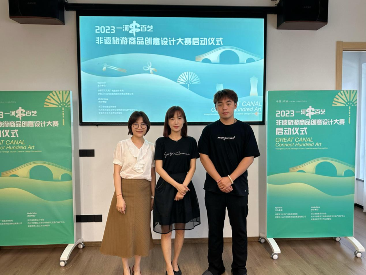 为进一步优化教育教学改革创新,近日,设计学院广告艺术设计教研室主任娄旻、专业教师商易文、品牌设计工作室组长周希良赴杭州市拱墅区美刻创意生活会客厅参加2023“一河串百艺”非遗旅游商品创意设计大赛启动仪式。