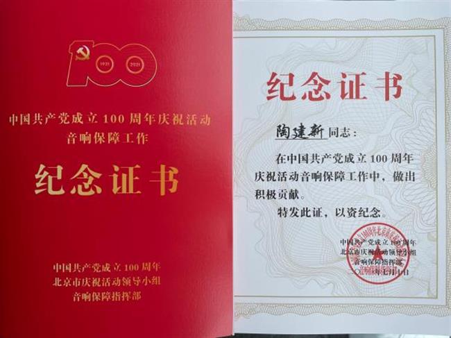 此外,陶建新与他的团队还承担了9月29日庆祝中华人民共和国成立70周年文艺晚会《奋斗吧,中华儿女》、10月1日晚天安门广场联欢的技术支持,更在建国70周年阅兵活动中,精准把控音响设备与流程衔接,确保阅兵现场每一处声音都能清晰传递,让全国观众透过声音感受到大国仪仗的威严与力量。