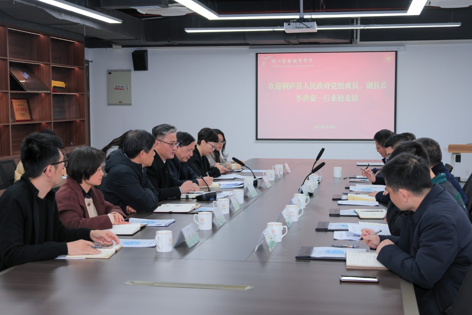 3月18日,桐庐县人民政府党组成员、副县长李世豪和华策影视集团董事、大策投资集团总裁夏欣才一行来校走访,校党委书记薛亮,党委副书记夏开堂,党委委员、副校长徐芳,相关职能部门负责人陪同。