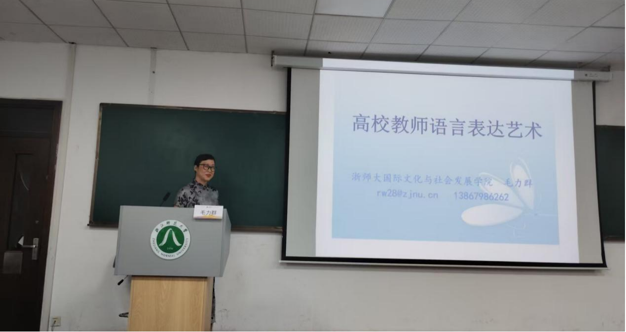 8月28日下午,浙江师范大学国际文化与社会发展学院教授、汉语国际教育专业博导毛力群以《高校教师语言表达艺术》为题开展讲座。讲座以“你适合做教师吗?”这一发人深省的问题开篇,直指当前青年教师课堂教学中“重内容轻表达”“有知识缺魅力”的普遍现象。