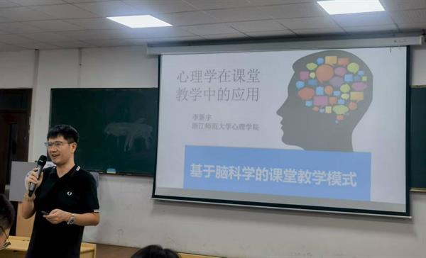 8月31上午,浙江师范大学应用社会心理中心副主任、教授、博导李新宇受邀开讲,讲座主题为《教学心理学初探:兼谈脑科学的应用》。李新宇教授深耕教育心理学与智慧教育领域多年,在讲座中分享了大量心理学与脑科学在教育中的应用实例。